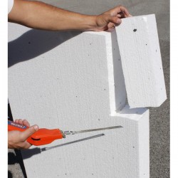 Permite un corte limpio de los aislantes de poliestireno expandido y extruido (EPS y XPS).